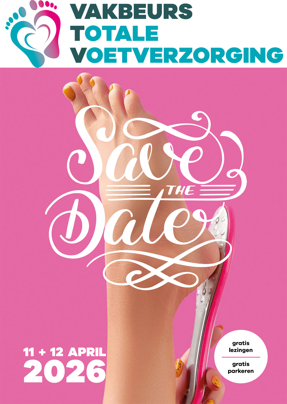 De Vakbeurs Totale Voetverzorging zal gehouden worden op zaterdag 11 en zondag 12 april 2026 in Expo Houten. Je bent van harte welkom van 10.00 uur tot 17.00 uur. Met deze link kun je alvast een kaartje kopen met twee euro korting! Parkeren is gratis en er wordt een interessant lezingenprogramma voorbereid.